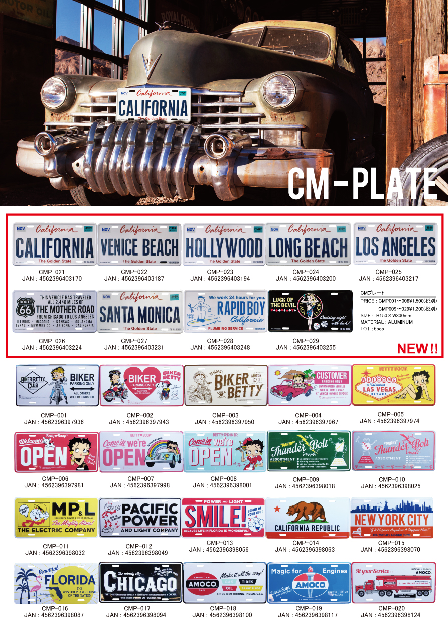 今回は、カリフォルニアライセンスプレートが新登場です。