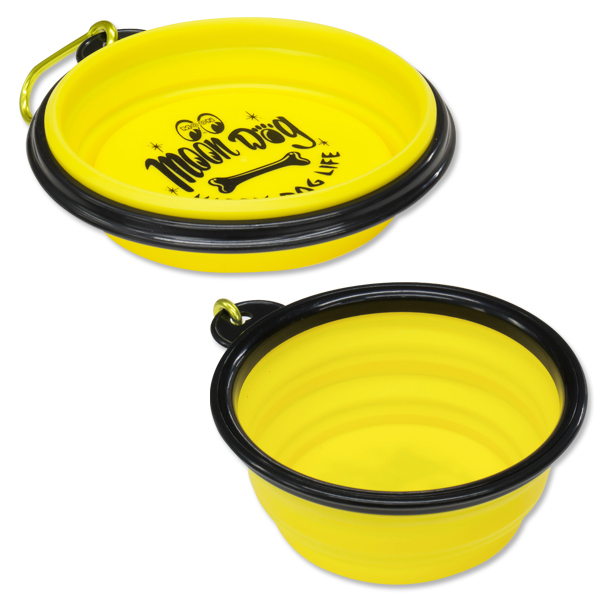 ワンちゃん用の水入れやドッグフード入れになる折りたたみ式シリコーン素材のボウルです。
