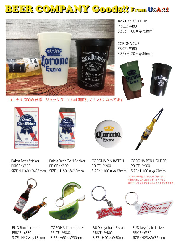 人気のBEERカンパニー「CORONA EXTRA」やキャラクターグッズなど一覧アップさせていただきます。