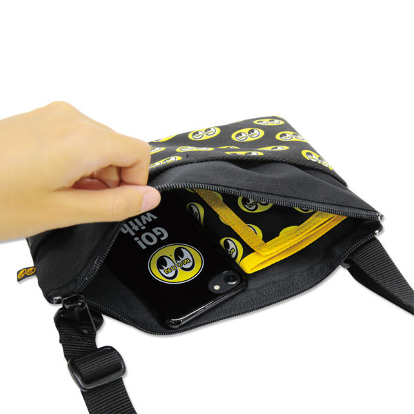 サコッシュの口にはファスナーが付いているので、移動中に物を落とす心配もありません。