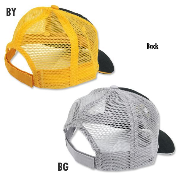 刺繍されたワンポイントのアイボールがアクセントの トラッカー キャップです。