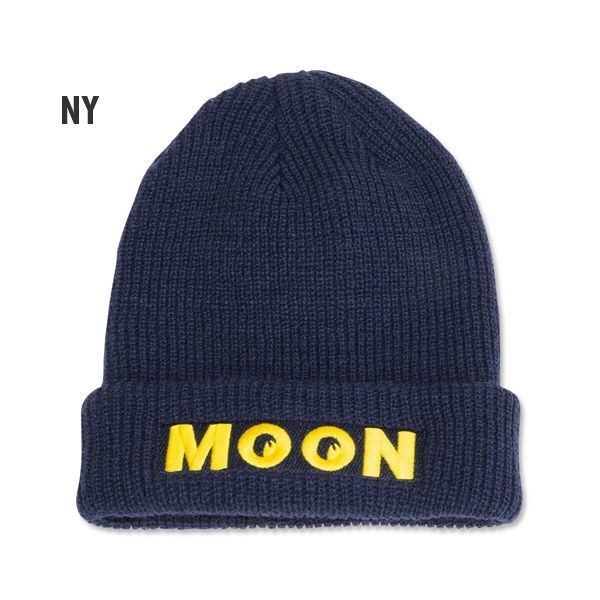 ポイントは折り返し部分のフロント中央に MOON ロゴの刺繍です!