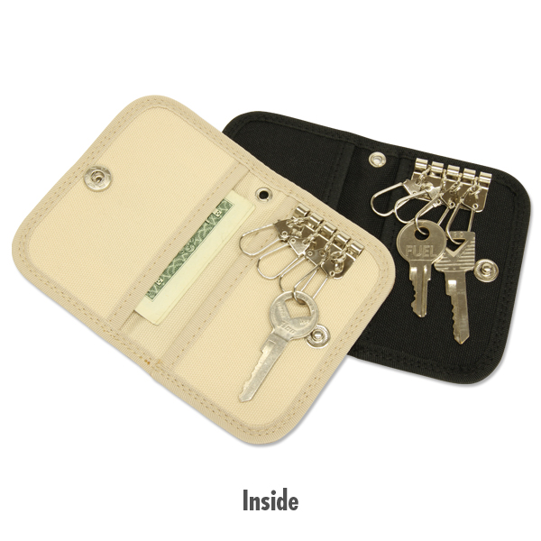 キー フックが4つも付いていて、左右にはレシートなどを入れられるポケットが付いています。