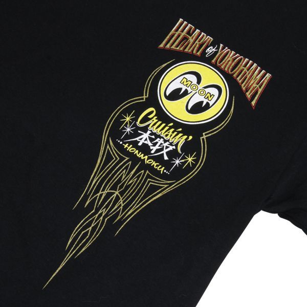 フロントの胸元には、アイボール ロゴに HEART of YOKOHAMA と Cruisin 本牧のレタリングを囲むようにピンストライプが入ります。
