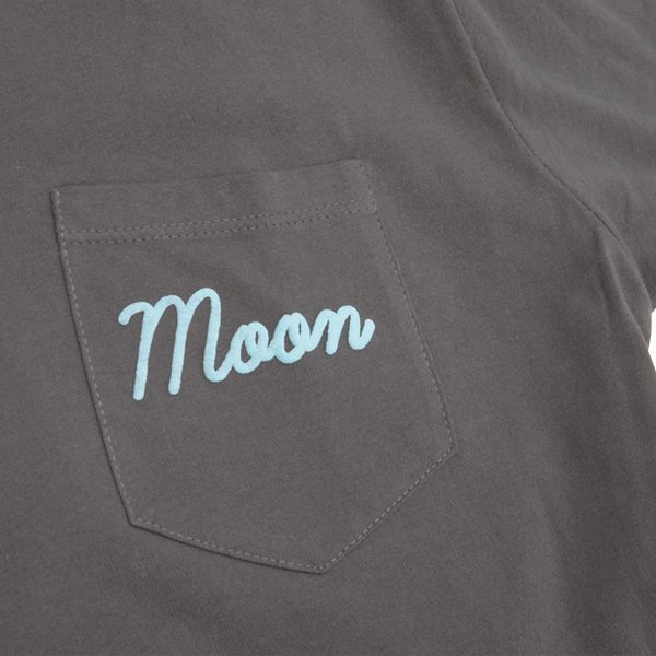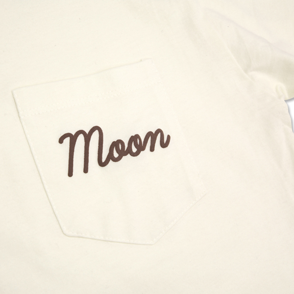 フロントの胸元のポケットにはワンポイントで MOON のレタリングは発泡プリントされています。