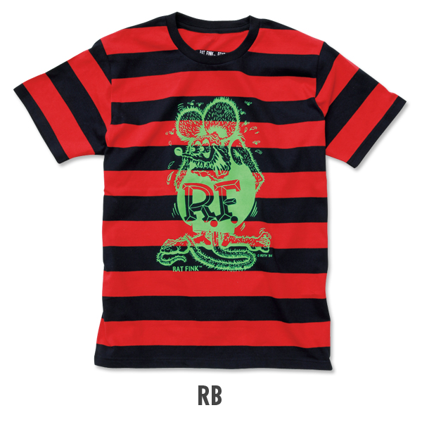 定番の Standing Rat Fink がプリントされた、ボーダー Tシャツです。