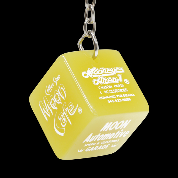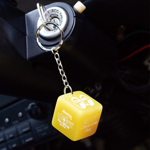 MOONEYES の ロゴが6面全てに入った MOONEYES のダイス キー リングです。 定番のアイシェイプ ロゴに始まり、MOONEYES Signs & Pinstriping Studio、