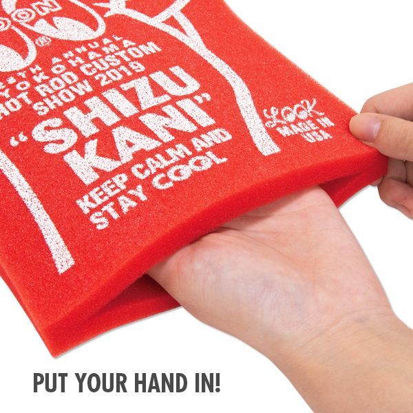 今年の Shizukani キャンペーン ステッカーと同じレッドのハンド型のスポンジで、中に手を入れることが出来ます。