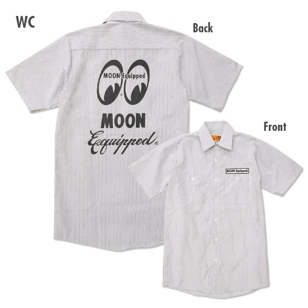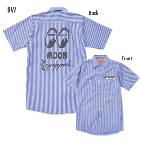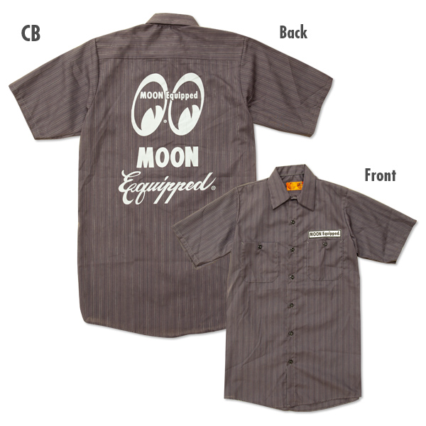 MOON Equipped のパッチがアクセントで付いている Red Kap のストライプ ワーク シャツです。
