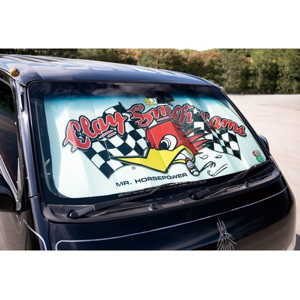 アメリカのサーキットでは、欠かせないキャラクター Clay Smith のロゴが入ったサン シェードです。