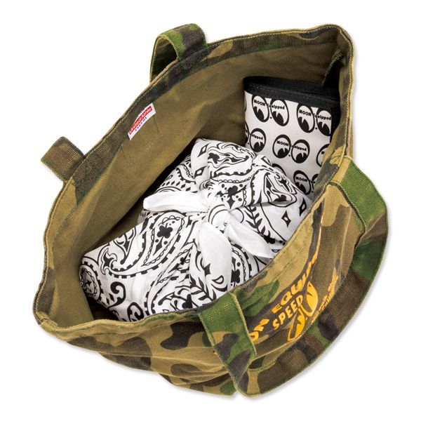 カモフラージュ柄で、フロントには、MOON Equipment Co. Speed Shop が