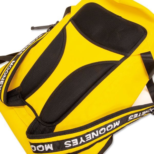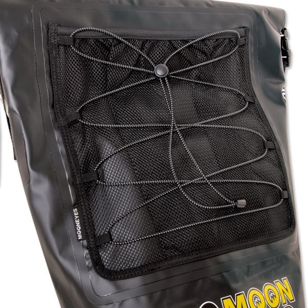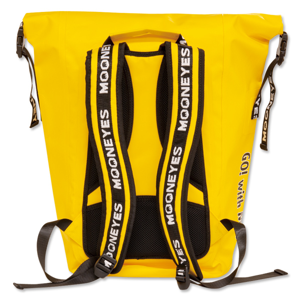 ブラックとイエローのスタイリッシュなデザインで、フロントには MOONEYES ロゴが入り
