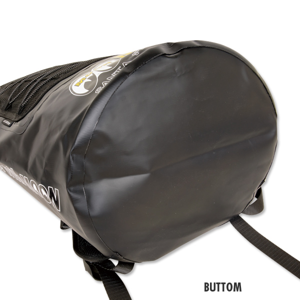 ターポリンという素材を使っているので、雨や雪などによる水滴を弾き、ロールトップで水の侵入を防ぎます!
