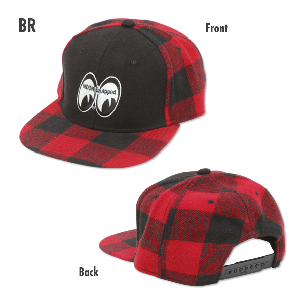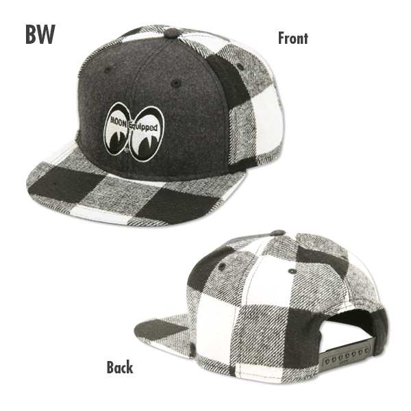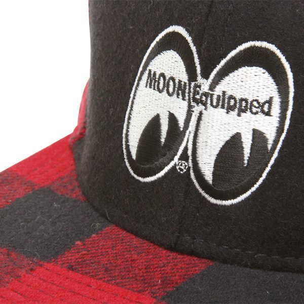 チェックがアクセントになっている MOON Equipped のメルトン生地 フラット バイザー キャップです。
