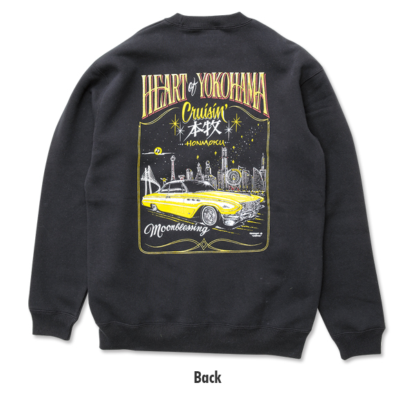 27th YOKOHAMA HOT ROD CUSTOM SHOW 2018 で、”Moonblessing” として、登場した 1961 Buick LeSabre と夜の横浜がデザインされたスウェットです。