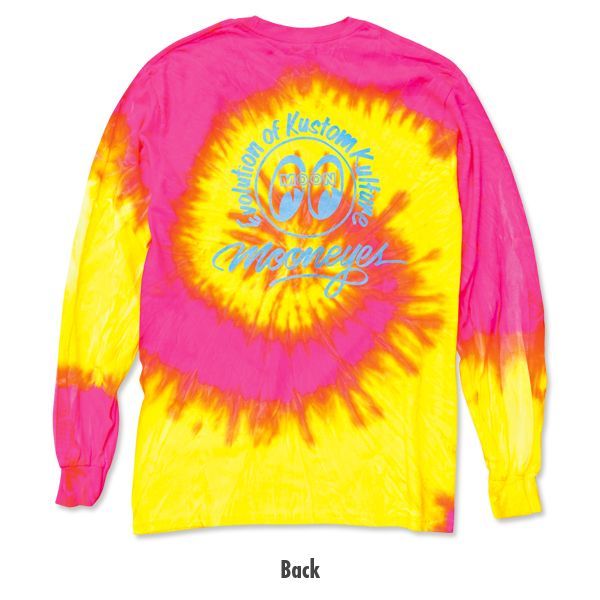 一度見るとしばらくは目に焼きそうなくらい眩しいイエローとピンクのマーブル模様 長袖タイダイTシャツです。
