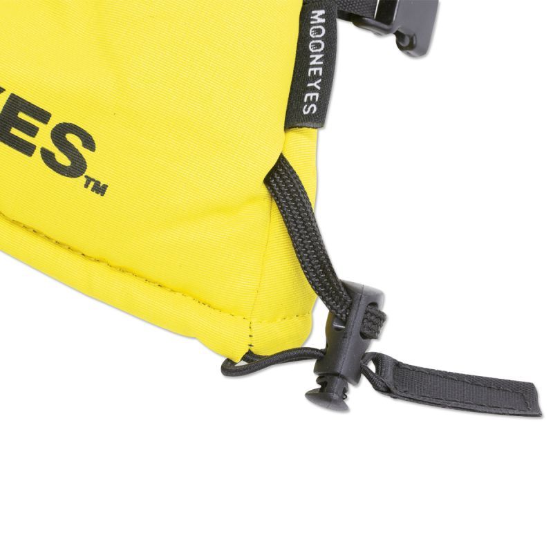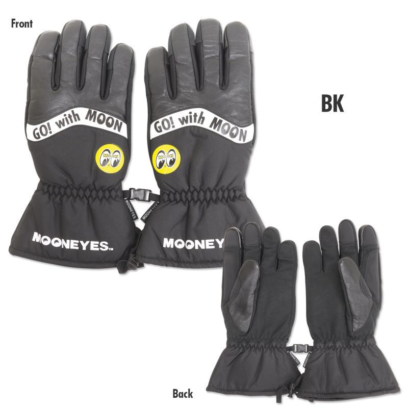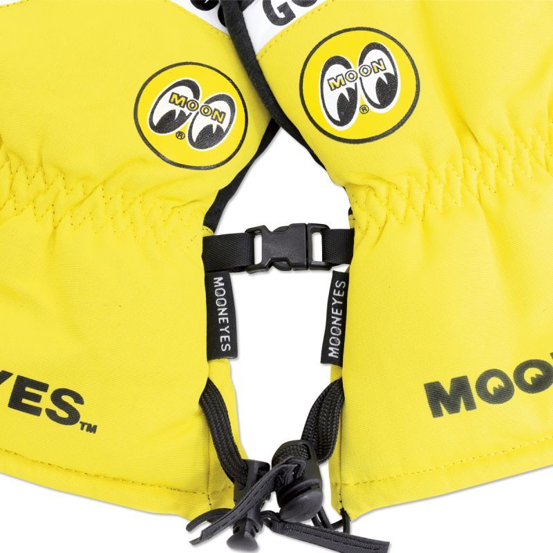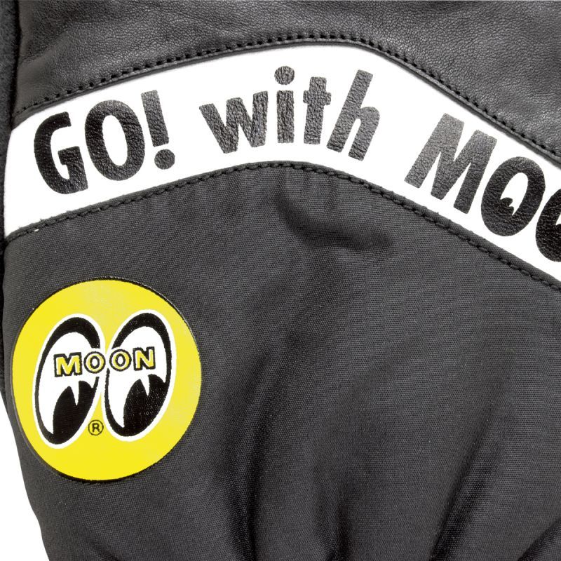 手の甲の部分には、Go! with MOON のレタリング、そして右側にワンポイントでアイボールの刺繍が施されたデザインです。
