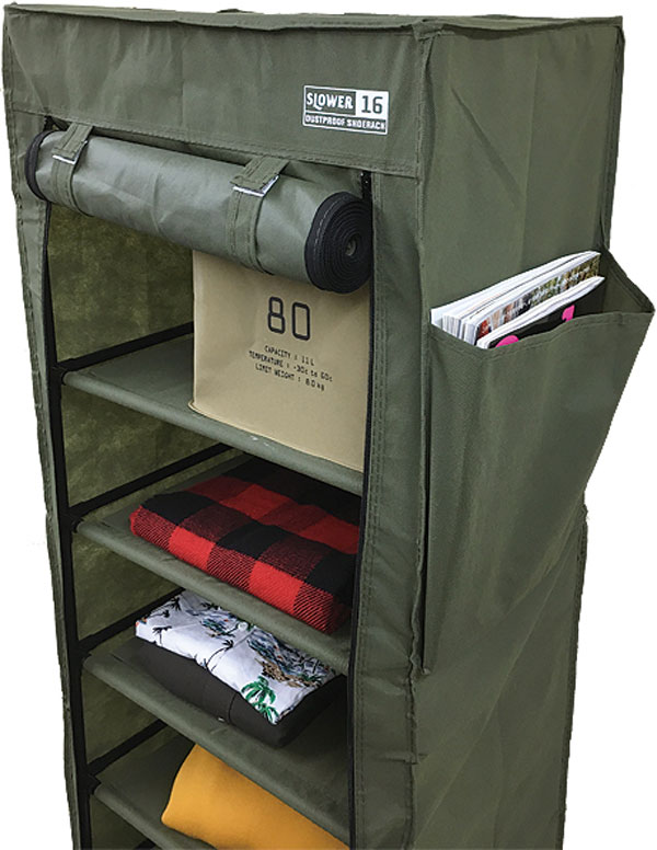 カバーをロールアップすればコレクション、衣類、シューズ類を見せる収納化できます。