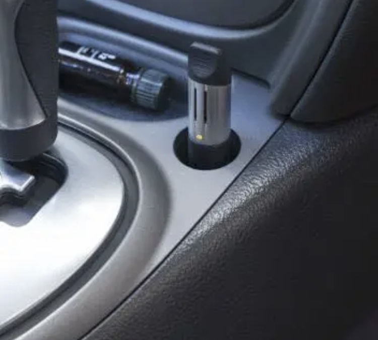本体の先端部分に付属のパッドを装着し、シガーソケットに差すだけで車内に香りが広がります。
