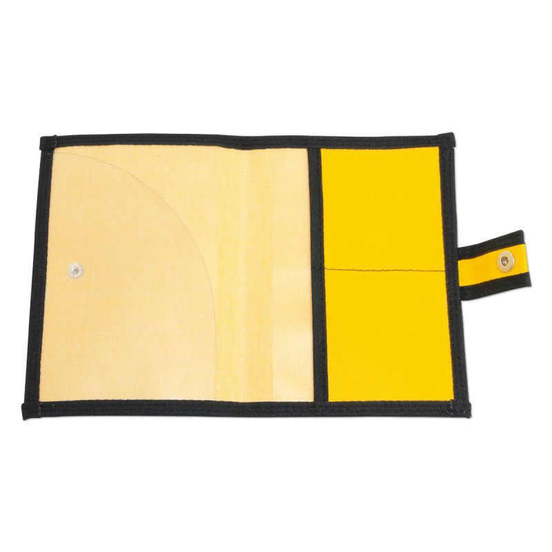 このアイテムの内側には、ボーディング チケットなどを挟めるスリーブ付き、