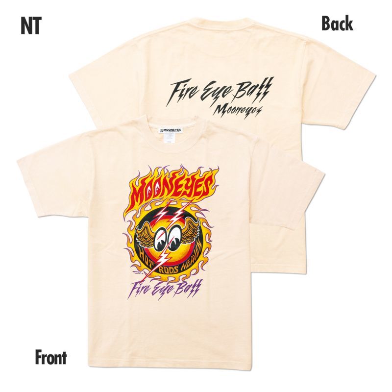 バックにもFire Eyeball と MOONEYES のレタリングが入り、フロントもバックも FIRE と ライトニングで ROCK!