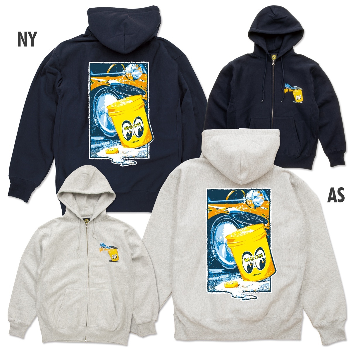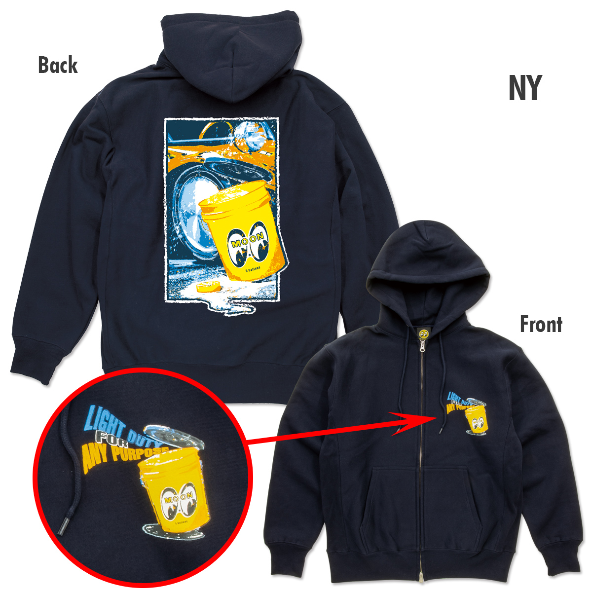 MOON バケツにスポットを当てたジップ フーディー