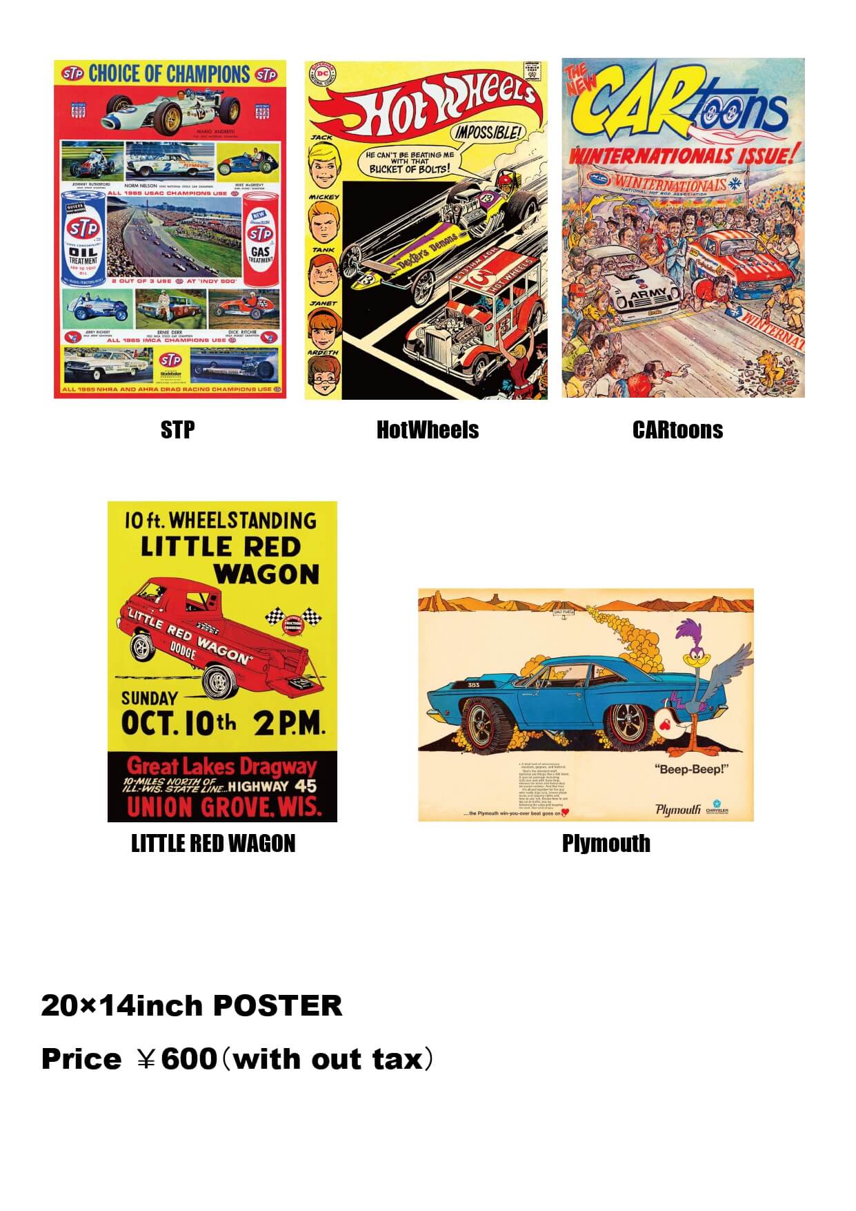 【2014poster1】ポスター CARtoons 20×14インチ ヴィンテージ アドバタイジング モーター レーシング アメリカン(参考上代¥600/ロット:3)
