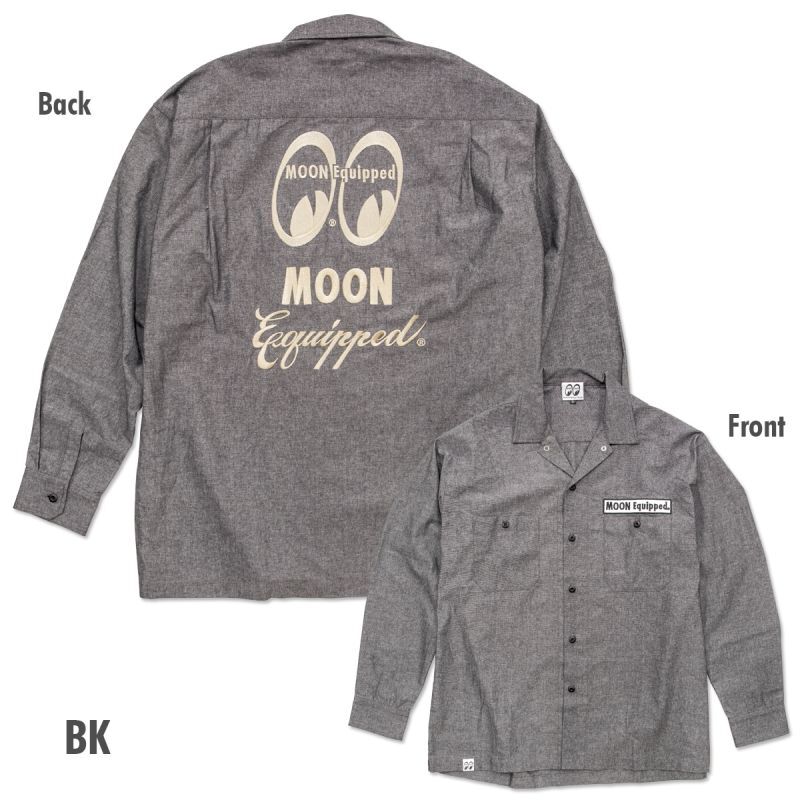 【MQF089】ムーンイクイップド シャンブレー ロング スリーブ ワーク シャツ MOON Equipped ムーンアイズ MOONEYES(参考上代¥12000/ロット:1)